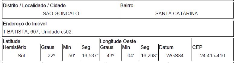 Localização: Casa em Endereço: TRAVESSA BATISTA | Bairro: SANTA CATARINA | Número: N. 607 CASA 02 SAO GONCALO - RJ