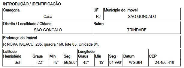 Localização: Casa em Endereço: RUA NOVA IGUACU | Bairro: TRINDADE | Número: N. 205 CASA BASE SAO GONCALO - RJ